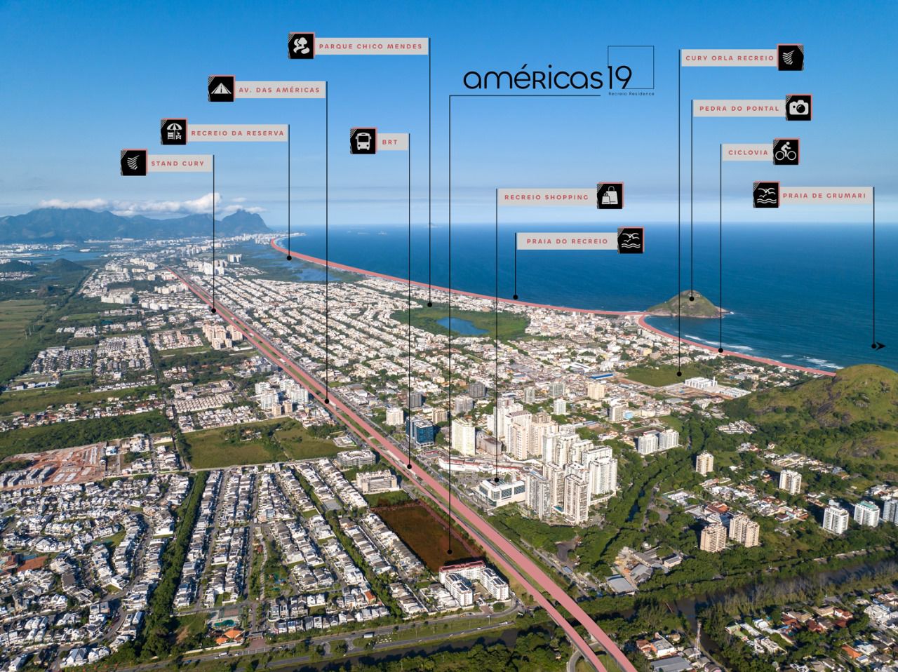 O Residencial Américas 19 é para quem busca lazer completo no melhor quilômetro da Avenida das Américas, a mais famosa e movimentada da Zona Oeste do Rio de Janeiro. É o condomínio para quem está à procura do melhor estilo de vida, com proximidade a todo comércio e diversão da região do Recreio, e perto das praias ideais para a prática de esportes como surf, vôlei e windsurfe. Além de aproveitar o mar, você e sua família poderão andar também de bicicleta pela ciclovia da Orla, um dos passeios preferidos dos moradores da região.