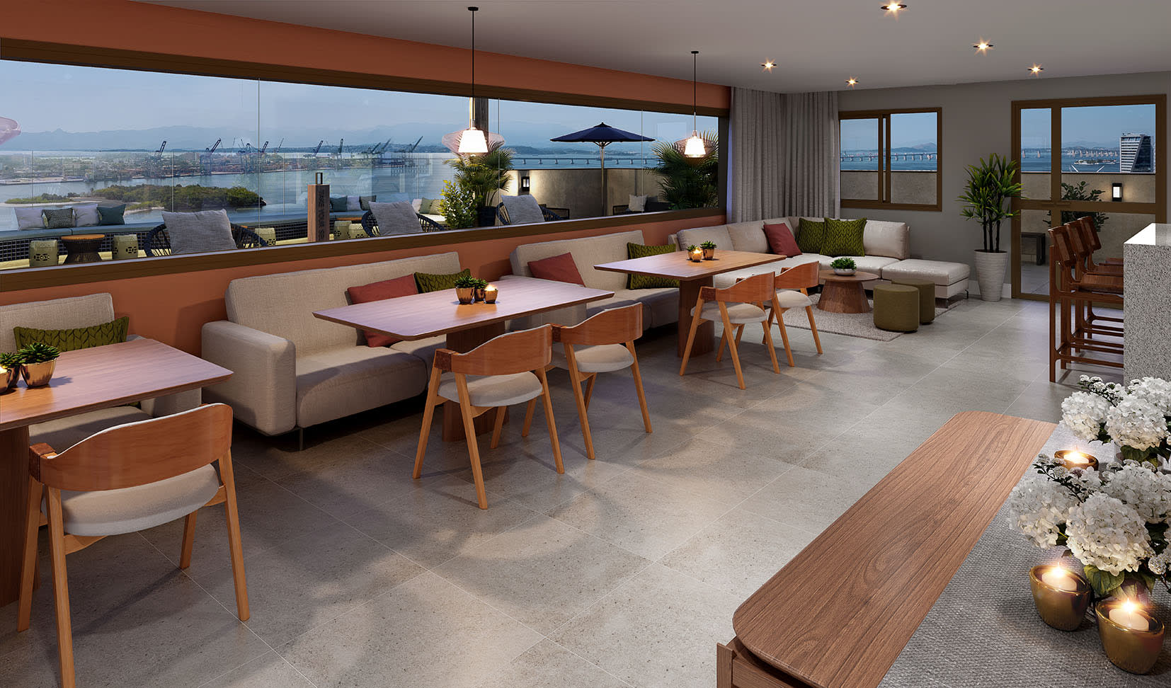 Como o próprio nome já diz, o Mirante da Guanabara é o condomínio para quem quer apreciar de perto todas as maravilhas que o Rio tem a oferecer. Localizado na região revitalizada do Porto Maravilha, no Centro do Rio de Janeiro, ele possui diversas opções de mobilidade para você chegar facilmente onde quiser, além de um incrível rooftop para observar toda a beleza da Baía de Guanabara com uma vista incrível do fim de tarde.